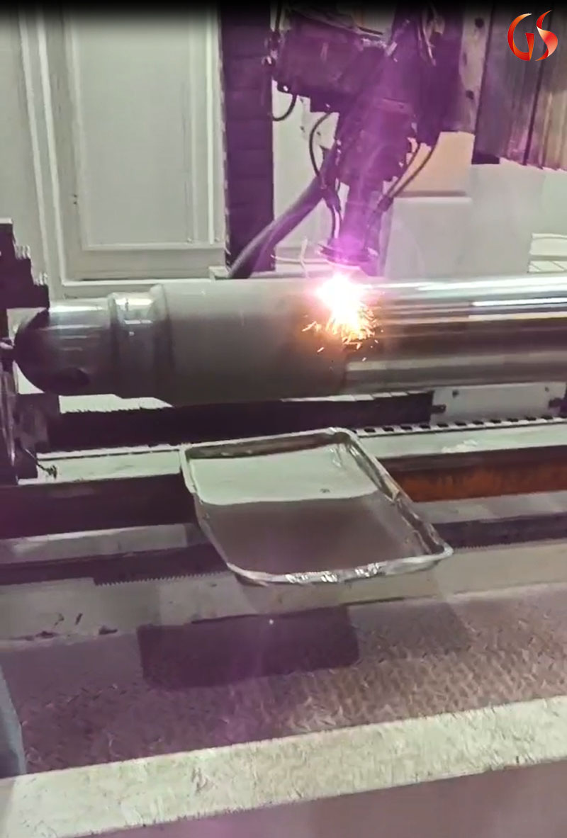 2、熔覆前準(zhǔn)備:將車削后的工件裝夾到專用旋轉(zhuǎn)設(shè)備上,對(duì)熔覆區(qū)域進(jìn)行除銹、除油處理。同時(shí),對(duì)激光器鏡頭進(jìn)行擦拭,確保激光束的聚焦效果。