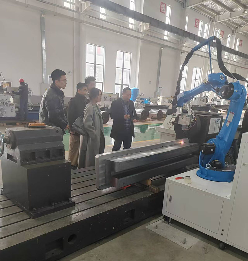 上午九點,張志芬教授一行準時抵達西安國盛激光。公司高層領導早已在公司大廳等候,雙方進行了簡短而熱情的歡迎儀式后,便正式開啟了此次交流之旅。首先,由西安國盛激光的總經理段純先生親自引導,帶領張志芬教授一行參觀了公司的研發中心、生產車間及測試中心。每到一處,張教授都仔細詢問技術細節,對國盛激光在激光熔覆、激光淬火、激光清洗及3D打印等領域的最新研究成果表現出了濃厚的興趣。每一項技術的展示都讓在場的學者們眼前一亮。特別是公司在激光增材制造(3D打印)領域取得的突破,不僅實現了復雜結構件的高效成型,還極大地提高了材料的性能和使用壽命。