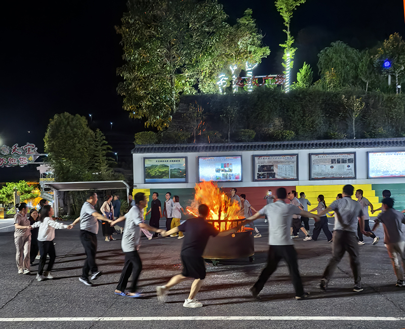 篝火與歌聲交織的團建狂歡夜, 夜晚的篝火旁,是心與心的靠近。景區的籃球場搖身一變,成為了今晚活動的主場地。工作人員早早地在場地中央架起了篝火堆,待天色完全暗下,在國盛激光領導人段總主持下,熊熊烈火瞬間點燃,跳躍的火苗猶如熱情的舞者,照亮了整個場地,也點燃了每個人心中的歡樂。褪去工作中的嚴肅,大家圍繞篝火共舞,暖橙色的火光映照著一張張興奮的臉龐。