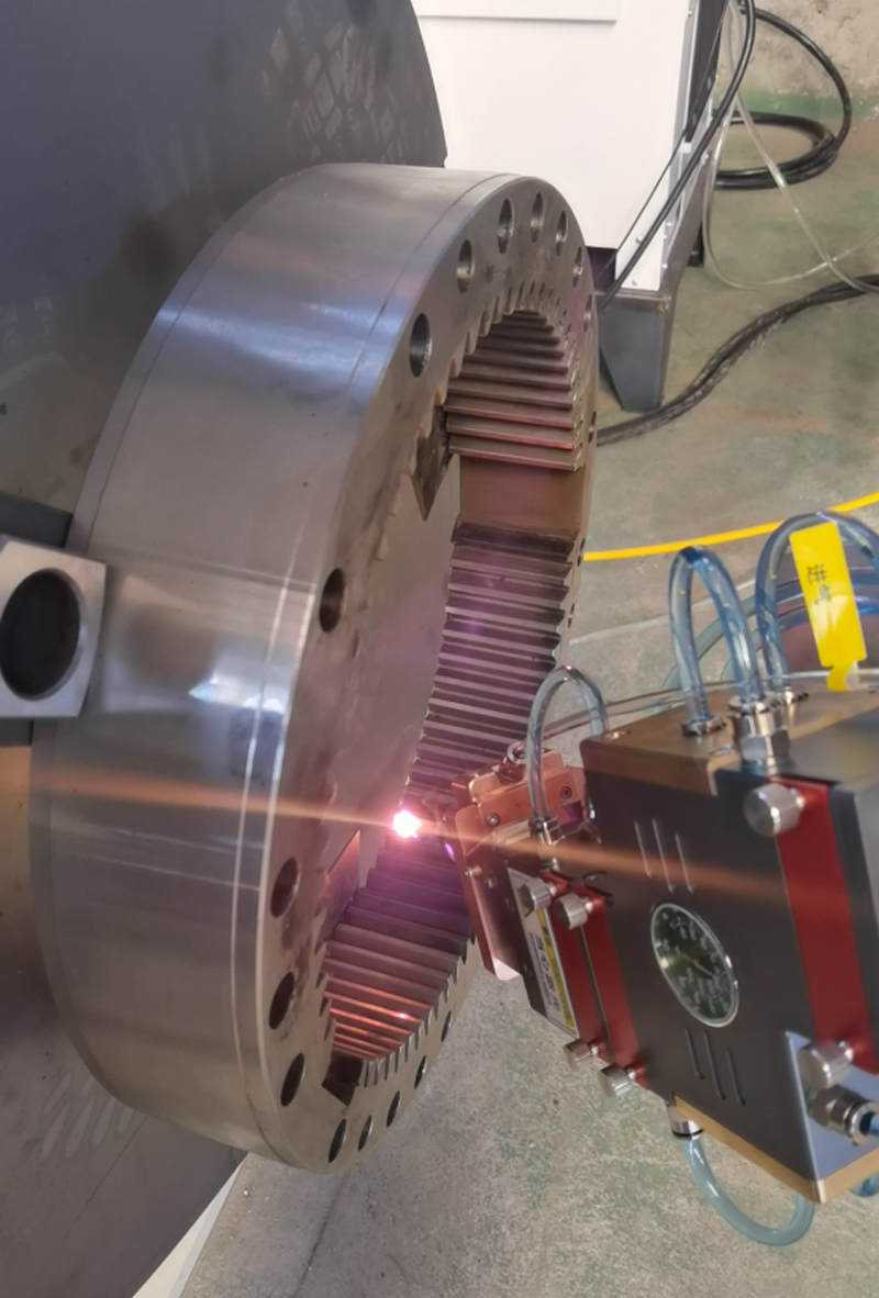 齒圈作為機械傳動中的關鍵部件,廣泛應用于汽車、工程機械、機床等領域。其齒面在長期的嚙合傳動過程中,容易因磨損、疲勞、沖擊等因素出現損壞,如齒面磨損過量、點蝕、剝落等,這些問題會導致傳動精度下降、噪音增大,甚至引發設備故障,影響生產效率和安全。而激光淬火修復加工技術,為齒圈齒面的修復提供了一種高效、優質的解決方案。