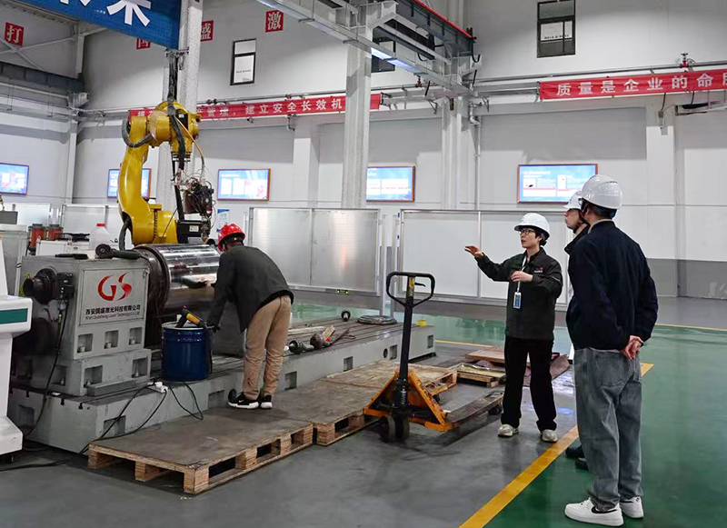 在技術團隊的陪同下,代表團深入國盛激光的生產車間,實地觀摩了激光熔覆設備的運行流程、工藝細節及成品檢測環節。雙方重點探討了碳化鎢、金剛石復合工具的表面強化技術,并就加工精度、極端工況適配性等核心問題交換了創新思路。