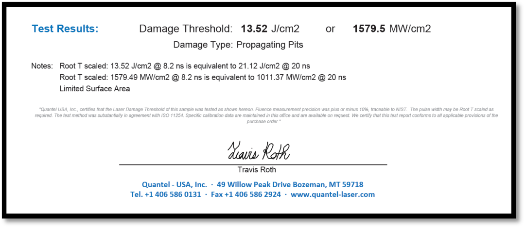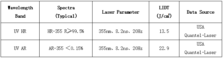 表1 355nm損傷測試數據(Tested By USA Quantel-Laser)