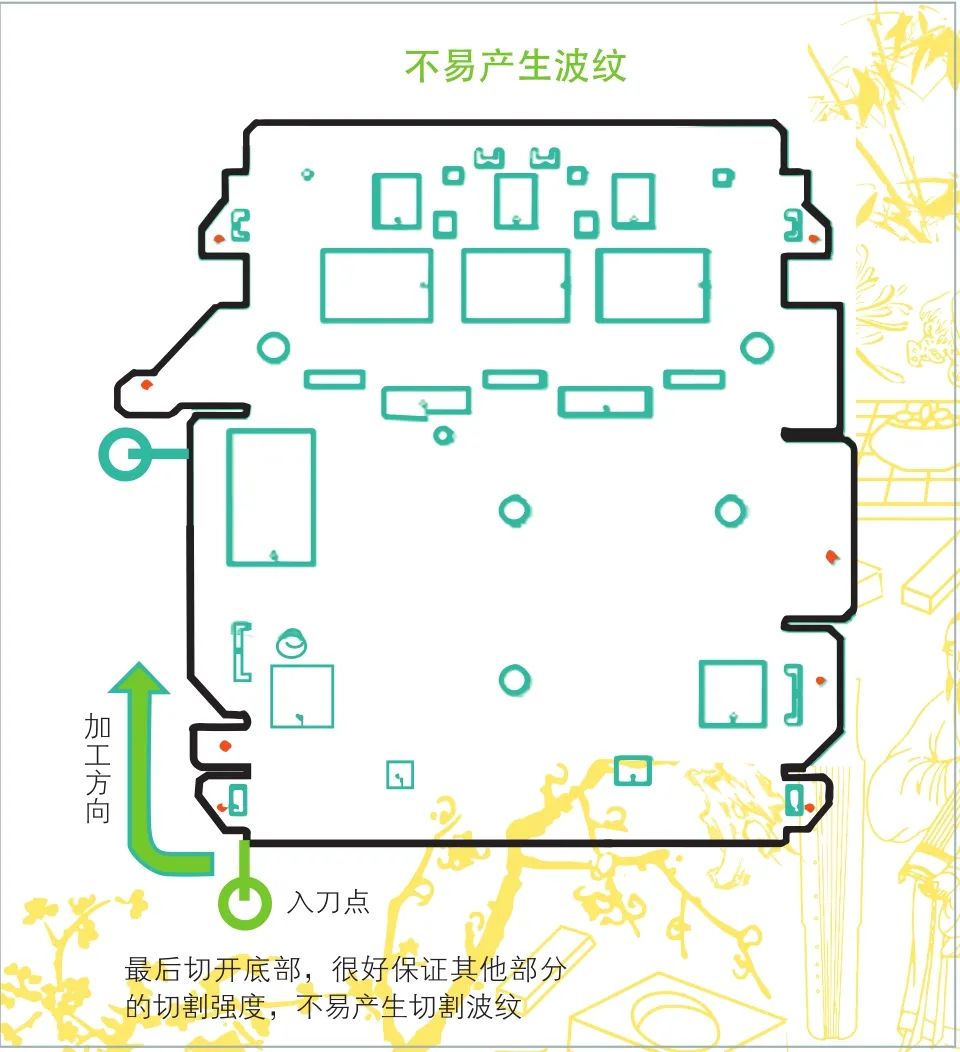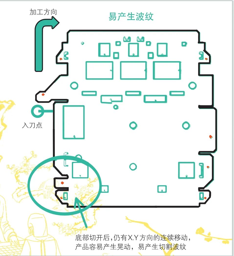 以上研究的影響因素是根據(jù)現(xiàn)階段出現(xiàn)的切割波紋的情況進(jìn)行分析而做的延伸分享。切割波紋的產(chǎn)生不是由某個(gè)因素影響產(chǎn)生的,是在多個(gè)因素共同作用下產(chǎn)生的,與制品的大小、尺寸、重量、加工速度等都有一定的關(guān)系。要想避免切割波紋的產(chǎn)生,需要在編程過程中做好全面考慮,從而降低切割波紋產(chǎn)生的可能性。