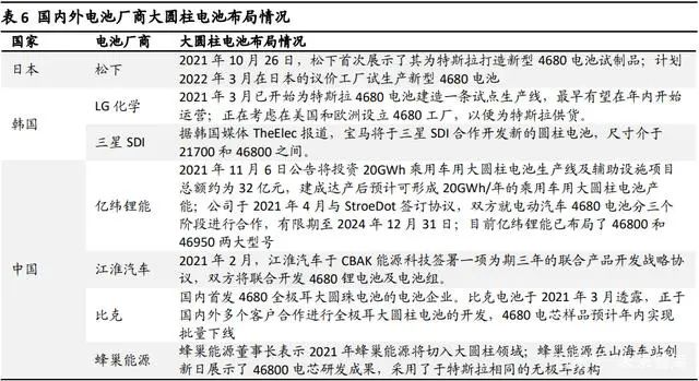 4680 大圓柱對激光工藝要求更高,且相比方形電池、小圓柱電池焊接量有望 上行。1)4680 電池對激光工藝求要求更高,極耳形態不受控制是工藝難點。根據華 經產業研究院官網信息,4680 電池采用全極耳工藝,打破了傳統電池一正一負兩個 極耳的模式,其工藝難點在于極耳形態不受控,易發生短路,制造時兩段封閉,電 解液滲入阻礙大,并且多極耳很難折疊整齊,對激光工藝要求更高。2)4680 大圓柱電池激光焊接相比方形電池、小圓柱電池分別在焊接工序、所需焊接設備上有所增加。根據華經產業研究院官網信息,1)相比方形電池,大圓 柱的全極耳所需的面焊,其激光焊接工序從 5 道增加至 7 道;2)從小圓柱電池看, 單 GWh 相較于 18650 和 21700 電池產線增加 5 臺焊接設備。結合上述情況,我們 認為,4680 大圓柱的激光焊接需求相比方形電池、小圓柱電池有望增長。