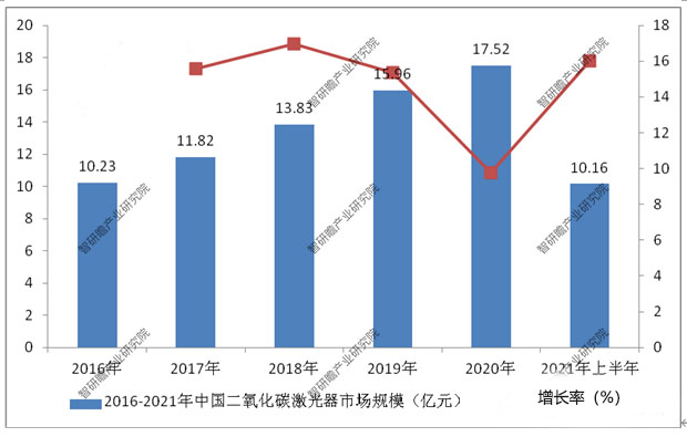 圖表:2016-2021年中國二氧化碳激光器市場規模分析