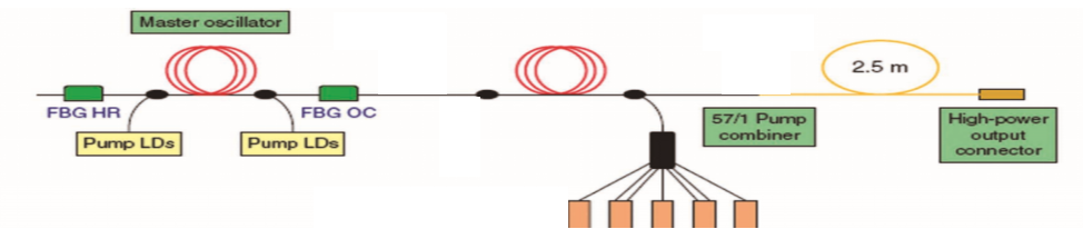 光纖激光器主要由泵浦源、增益介質(有源光纖)、諧振腔三大部分構成。