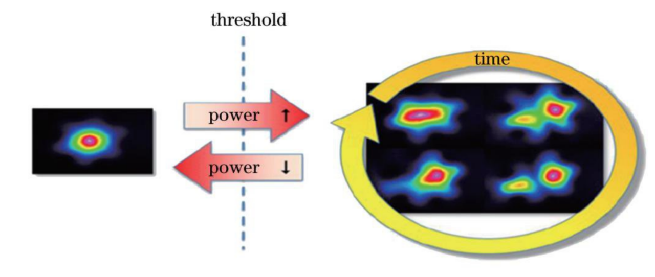 橫向模式不穩定是指高功率光纖激光在達到某一特定閾值后,隨著輸出功率提升或超過一定時間發生的由穩態基模輸出突然變為非穩態高階模式輸出,它會導致光束質量下降,限制光纖激光輸出功率的提升。嚴重情況會讓號稱 “最快的刀,最準的尺,最亮的光”的激光名不副實。