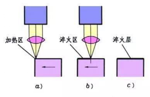 激光淬火是利用聚焦后(或經過光束整形)的激光束加熱于金屬表面使其發生馬氏體相變形成馬氏體淬硬層的過程,經過激光淬火加工后工件表面粗糙度基本不變,不需要后續機械加工就可以滿足實際工況的需求;